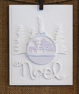 Patty captured the perfect combination of texture and dimension on her Winter Wonderland card. I love the trees, the textured falling snow and the wonderful glittered tag. It's a perfect example of a white-on-white card. Congratulations, Patty, you're my choice for this week's Headliner!